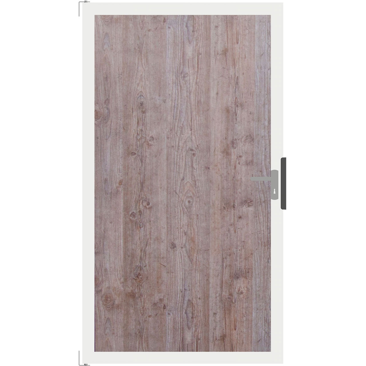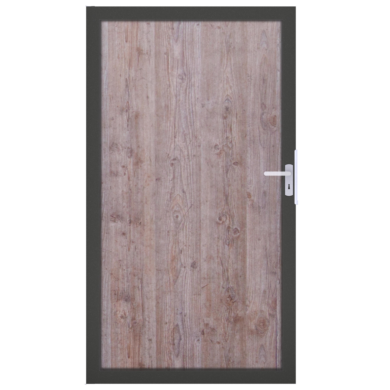 Die 100 cm breite Tür mit HPL-Füllung in Holzoptik kann universell, d.h. nach rechts oder links öffnend verbaut werden. Rahmenfarbe Aluminium-matt. Zum Lieferumfang gehören Scharniere, ein Anschlag mit Schließblech, Bänder, Schloss und Türgriffe. Es sollten unbedingt Türpfosten zum Einbetonieren (s. Zubehör) verwendet werden, damit die Tür stabil geführt wird.