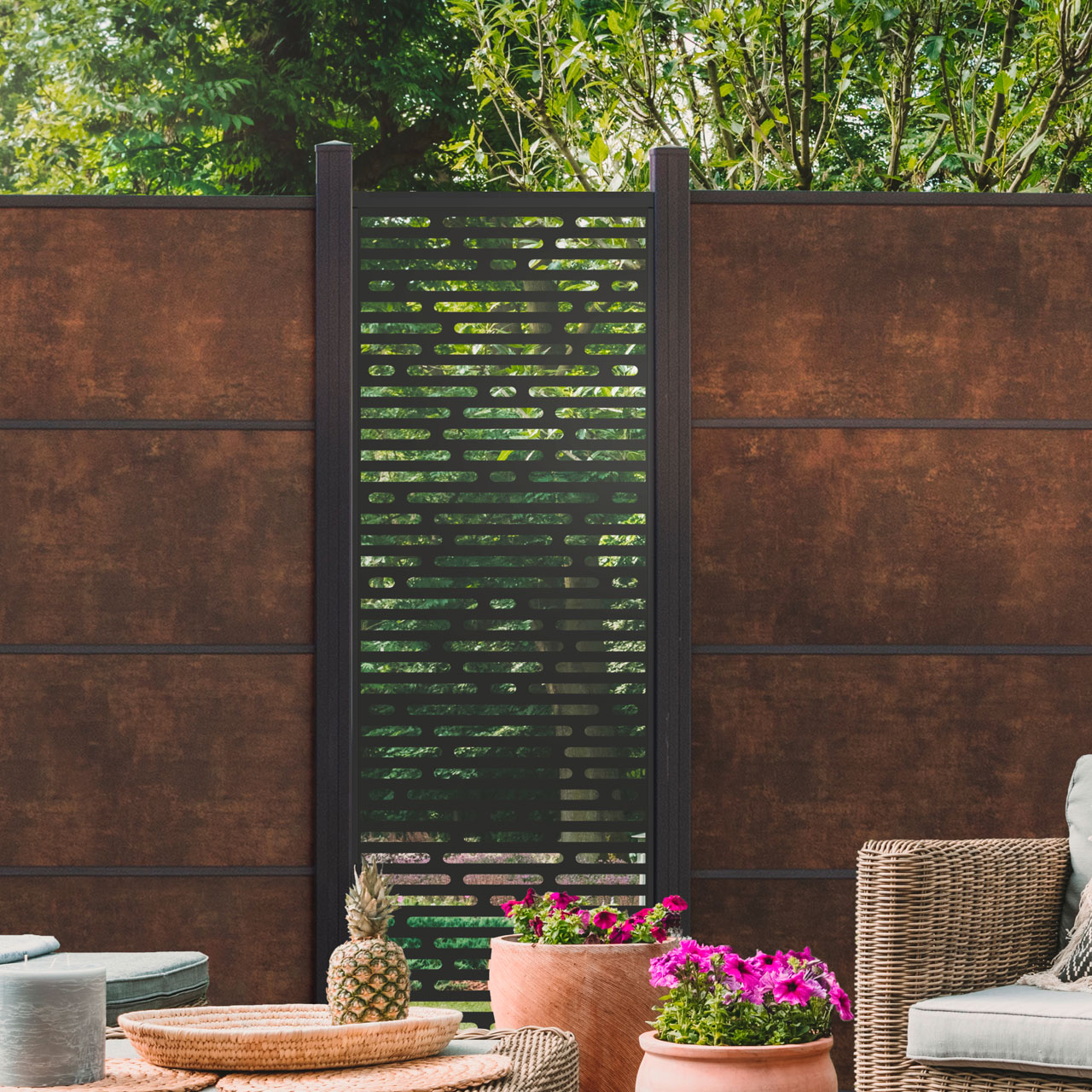 Die durchbrochenen Designeinsätze für Steckzäune bringen Transparenz und Leichtigkeit in den Garten-Sichtschutz. Die 180 cm hohen Design Füllungen aus pulverbeschichtetem Aluminium in Anthrazit (nur Dekor Grid in Silbergrau) verleihen Ihrem Steckzaun ein komplett neues Erscheinungsbild. Die Design-Einsätze sind kompatibel mit dem BPC-Steckzaun SOLID und SOLID-XL, dem Aluminium Steckzaun LUMINO und dem PVC-Steckzaun BASICLINE. Zur Montage zwischen den Pfosten, wird eine Bürstendichtung und Distanzstücke-Set benötigt, diese sind im Lieferumfang enthalten.