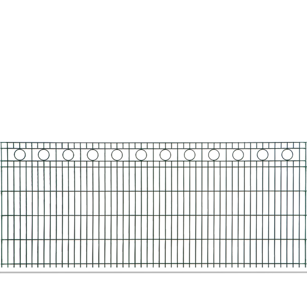 Die Schmuckmattenzäune ROM mit Kreis-Design als Verzierung (Elementbreite: 2510 mm) setzen als Metall-Gartenzaun einen besonderen Akzent bei der Grundstücksgestaltung, insbesondere im Vorgarten. Die verzierten Metallzäune heben sich optisch deutlich vom einfachen Doppelstabmattenzaun ab und sind eine günstige Alternative zum handwerklich gefertigten Metallzaun. Die Dekormattenzäune mit Kreisbordüre sind ein industriell gefertigter Systemzaun von höchster Qualität. Die Schmuckzäune sind robust, langlebig und optisch ausgereift. Die Schmuckzäune entsprechen in Qualität und Funktionalität zur Begrenzung und Absicherung des Grundstücks den bekannten Doppelstabmattenzäunen.